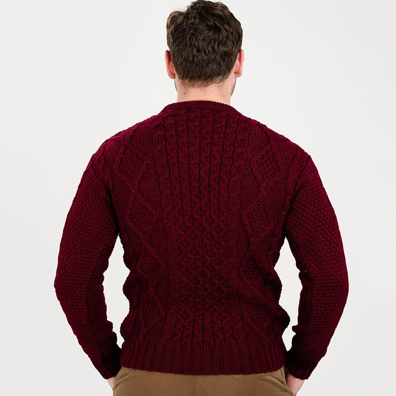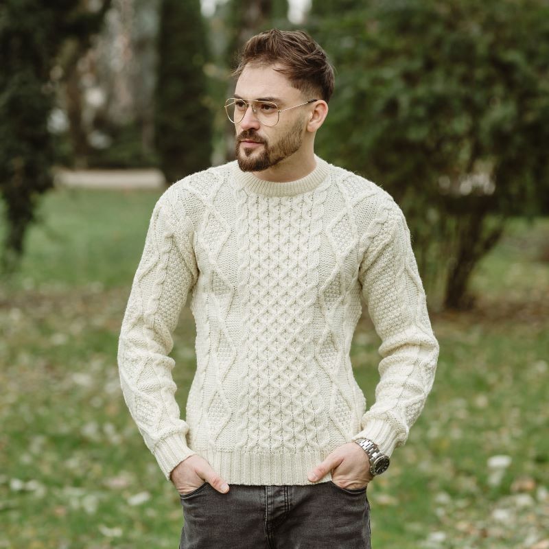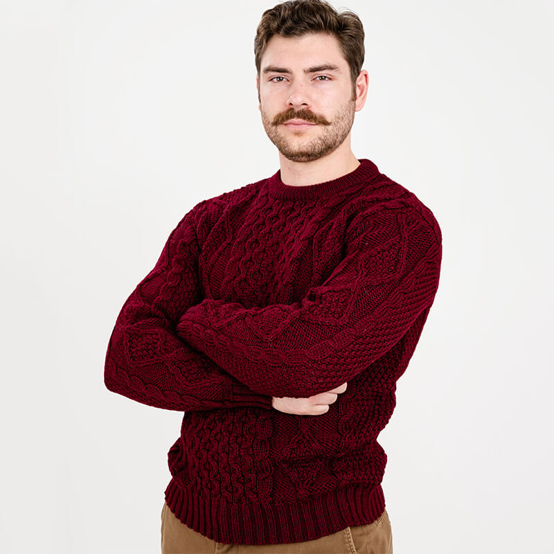 The classic crew neck design of the sweater, coupled with ribbed cuffs and hem, make a thoughtful addition that ensures a snug fit, wrapping you in warmth and protection against the brisk winds of the Irish landscape.Whether you wear it for a casual gathering, a formal event, or gift it to the special man in your life, this sweater effortlessly blends tradition with contemporary style, making it a cherished piece that transcends fashion trends and stands as a testament to the enduring allure of Irish craftsmanship.