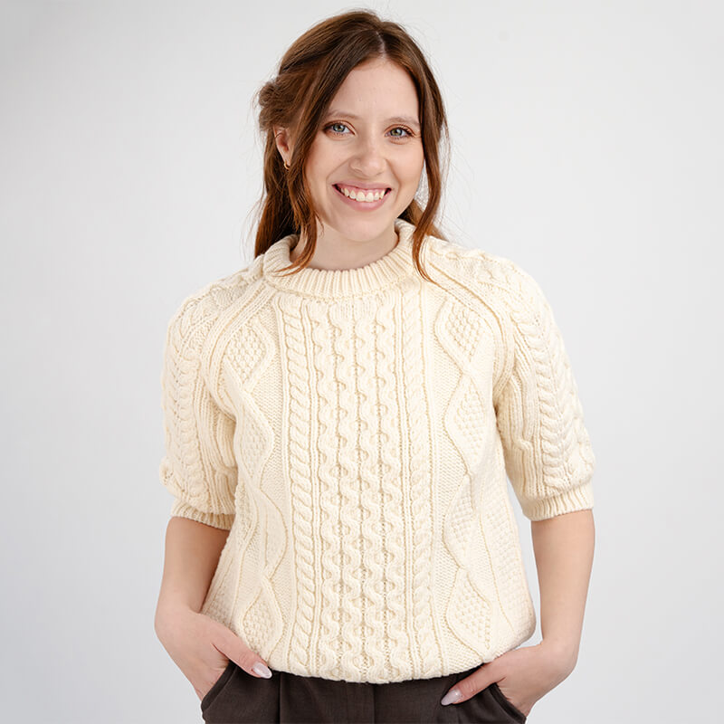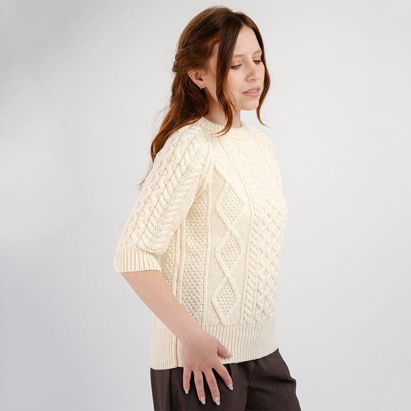It preserves the authentic Aran style by incorporating traditional Aran stitches such as the cable, honeycomb, and diamond. The cable represents the fishermen’s desire for safety at sea and hope for a good catch. The honeycomb symbolizes hard work, and the diamond symbolizes wealth and prosperity.