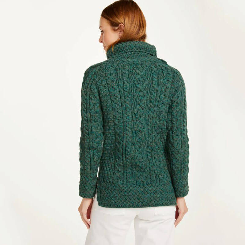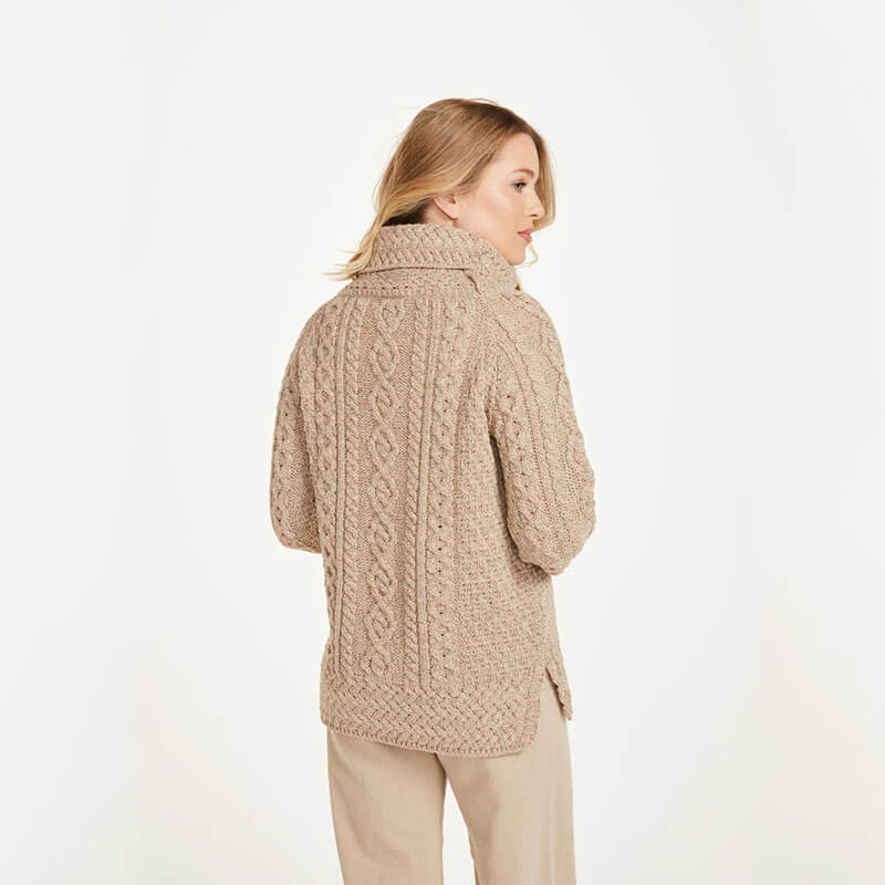 Our sweater comes with classy features that make it any lady's ultimate winter wear. For starters, the fantastic sweater is a product of one of Ireland’s finest, leading, and renowned Aran knitwear-producing companies-Carraig Donn. The craftsmanship employed by the magnificent Carraig Donn speaks volumes of the dedication, skill, and experience of the leading manufacturer. The products from the firm have a deep connection to Ireland, from the material used in knitting to the design and patterns in the outfits.