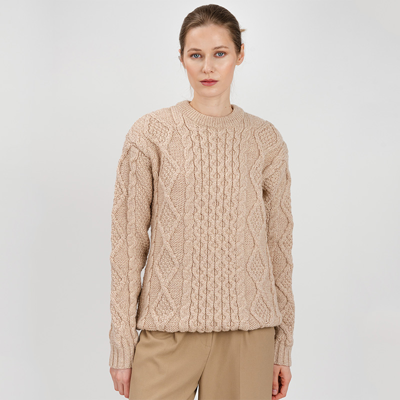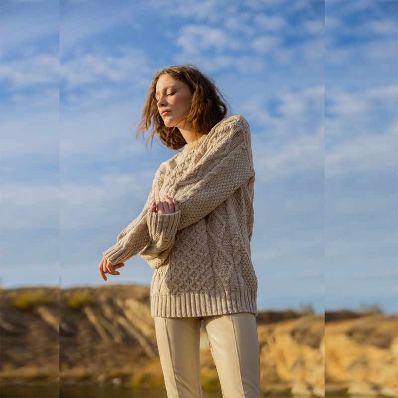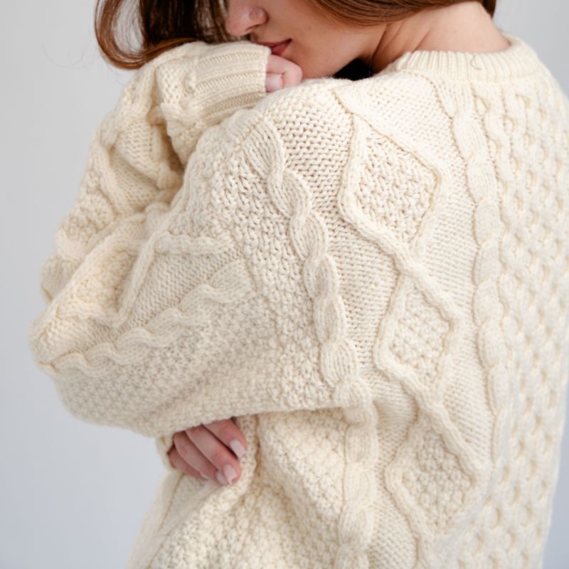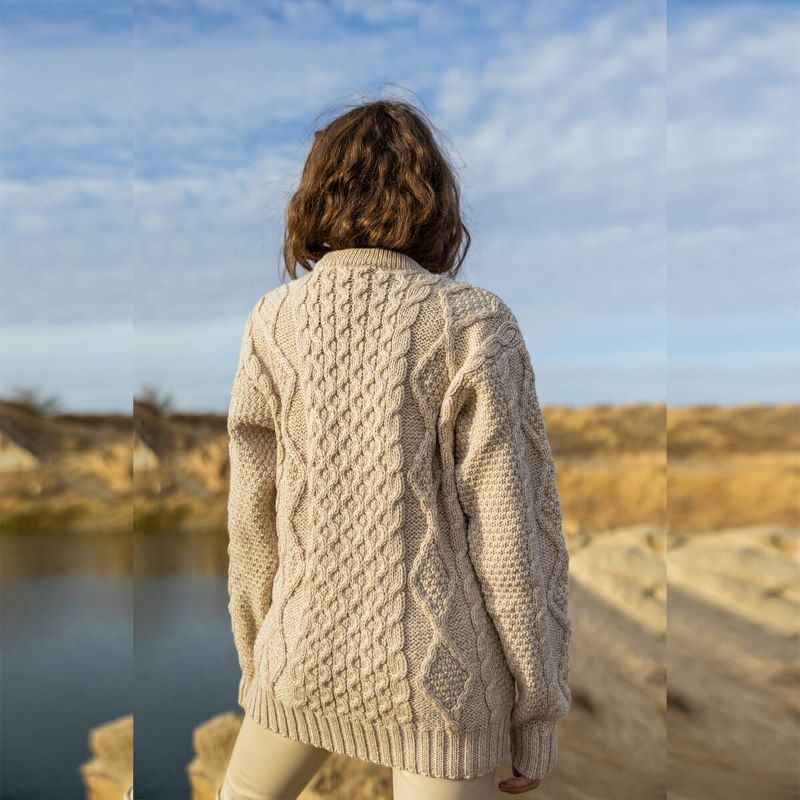 The thoughtfully selected design for its timeless appeal, allows for effortless pairing with a range of outfits, making this sweater the perfect gift for any special woman in your life. Whether you add it to your capsule wardrobe or gift it, this sweater seamlessly blends tradition with contemporary style, becoming a cherished piece that transcends fleeting fashion trends. It stands as a testament to the enduring allure of Irish craftsmanship, embodying a rich cultural heritage that resonates with those who appreciate both quality and meaning in their wardrobe choices.