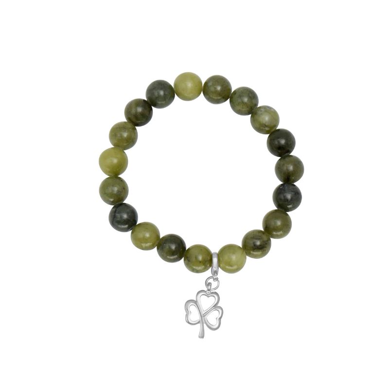 The stretch bracelet features a silver-toned Celtic charm of your choice: the shamrock or the trinity knot. Both symbols are deeply rooted in Irish tradition and are connected to the sacred number three. The shamrock, famously linked to St. Patrick, is a symbol of the Holy Trinity. Likewise, the trinity knot, with its graceful never-ending loops, also represents the Father, Son, and Holy Spirit – and the eternal nature of life and love.