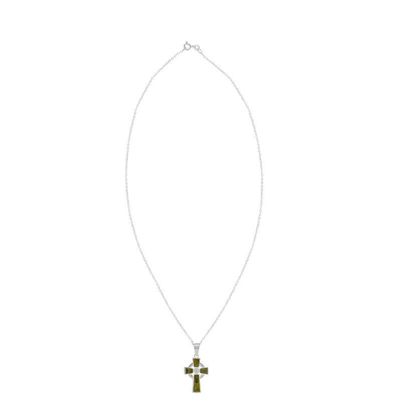 Bring a bit of Ireland’s magic into your day with our Sterling Silver Connemara Marble Celtic Cross Pendant! Featuring smooth Connemara marble inlays at each arm of the Cross, this pendant is as dazzling as it is meaningful. Mined from the rolling hills of western Ireland, the 900-million-year-old marble is as unique as the land itself– no two pieces are the same! With its rich green swirls and natural vein-like patterns, it's like wearing a little piece of Irish earth close to your heart– literally and figuratively!