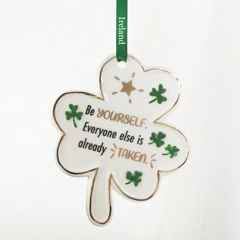 It’s one of those pieces that somehow manages to feel both cheerful and calming at the same time. While the clover is thought to be a powerful symbol of luck for those who find it in the green fields of Ireland, the 3-leaf shamrock is rather a symbol of faith, being associated with Saint Patrick and representing the concept of the Holy Trinity. These decorations have each a distinctive design: the shamrock with "Be yourself. Everyone else is already taken", and the two clovers with "Remember today is the tomorrow you worried about yesterday" and "Good vibes only" respectively.