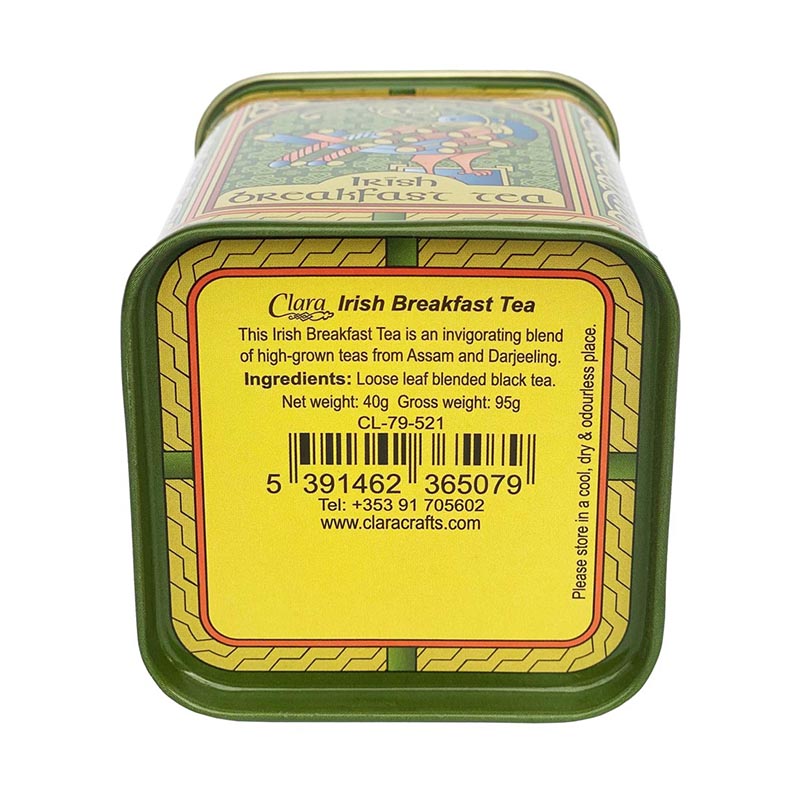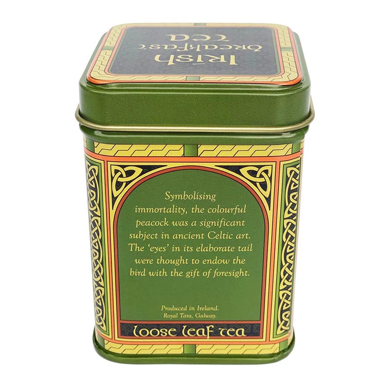 The tea is stored in a lovely metal tin canister, a strong, rigid, lightweight, and corrosion-resistant material that guarantees quality and lasting use. Additionally, the tin storage can be later reused for herbs, teas, and other spices. Alternatively, it can also be kept as a decorative Irish souvenir. The design of the tea canister features an authentic Celtic Peacock, an admired symbol in Celtic culture that is said to represent immortality. According to legends, the “eyes” of the peacock’s plumage can give foresight into the future. Moreover, ornate Celtic knots beautifully complete the design and adorn the margins, representing interconnectivity.