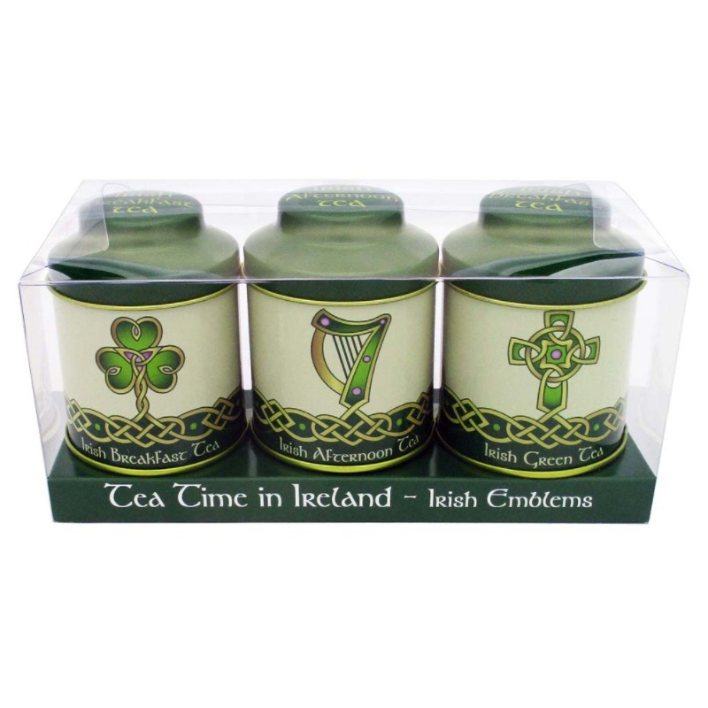 The three tea caddies are not only filled with crowd-favorite tea blends but are also designed to capture the essence of Ireland's heritage. The first caddy showcases the elegant Irish harp, a symbol of national identity and pride. The second tin highlights the lucky shamrock, representing good fortune and a connection to the Emerald Isle’s Christianity. Lastly, the third caddy displays the timeless Celtic cross, embodying Irish spirituality and history.