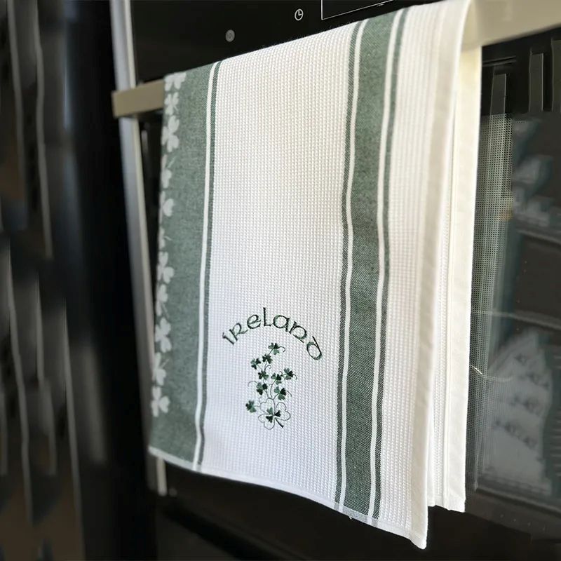 Bring a delightful touch of Irish charm to your kitchen with our Waffle Embroidered Tea Towel. It features Irish designs embroidered, bringing a sense of whimsy and warmth and making your daily kitchen routines more enjoyable.