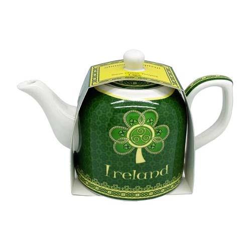 Our Shamrock Spiral Irish Teapot is a beautiful piece designed for tea lovers who celebrate their Irish Celtic roots! This charming teapot features a highly intricate design with a golden shamrock at its center and ‘Ireland’ lettering in ancient Celtic font, all bordered by Celtic knotwork, suggesting the ideas of eternity and interconnectedness. The shamrock has been a symbol of Ireland for centuries and is rooted in the rich Irish history and mythology. It’s believed that Saint Patrick, the patron saint of Ireland, used the shamrock to explain the Holy Trinity to the Irish people.