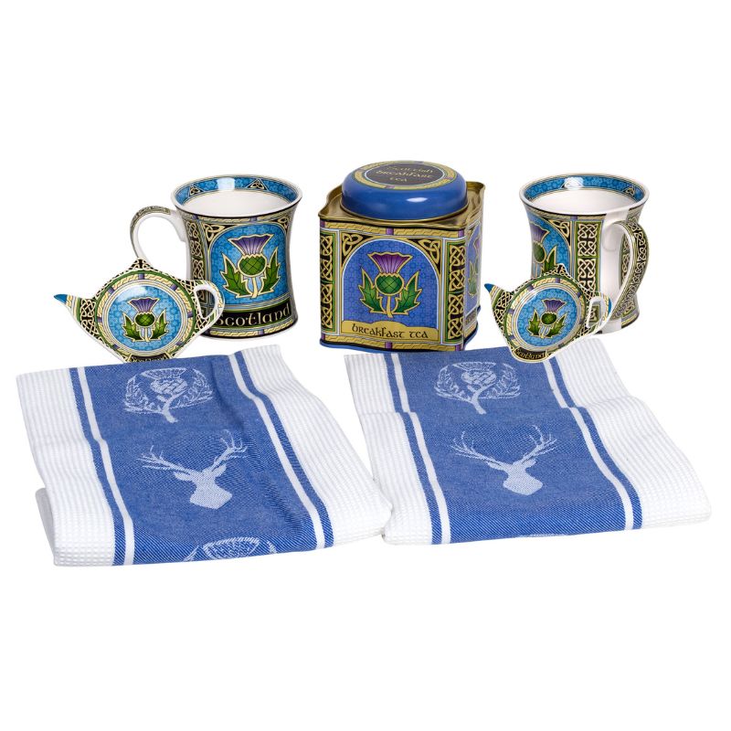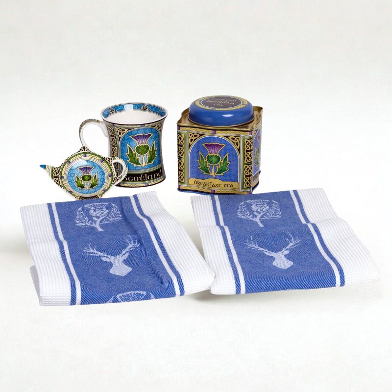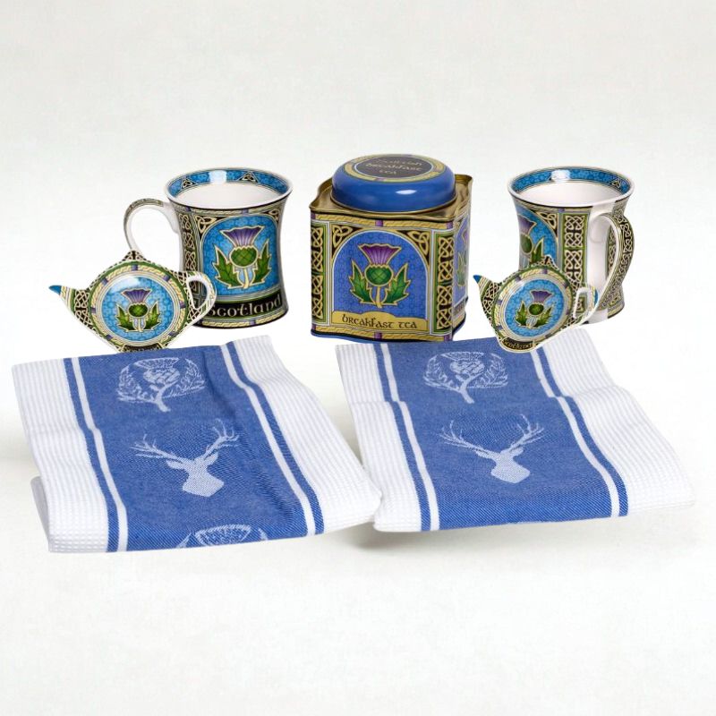 Bring warmth, heritage, and charm to your tea ritual with the Scottish Thistle Tea Set – Mug, Holder, Tea & Towels, a thoughtfully curated collection inspired by our Scottish tradition. You can choose between a set that includes a mug, teabag holder, tea, and a pair of towels, or a set that gives you 2 mugs & 2 holders – all united by a striking thistle design.