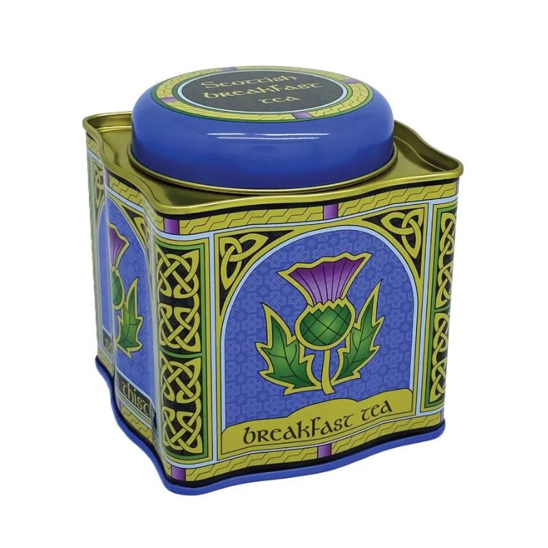 The mug and teabag holder are crafted from 100% new bone china, offering durability, a refined shine, and resistance to chips and scratches. Both are microwave- and dishwasher-safe. The mug holds 11 fluid ounces, while the teapot-shaped holder measures 4 inches – perfect for resting used teabags.The set also includes a rich Scottish Breakfast Tea, a black blend that’s delicious with milk or enjoyed plain. The ergonomic reusable tin contains 50 teabags.