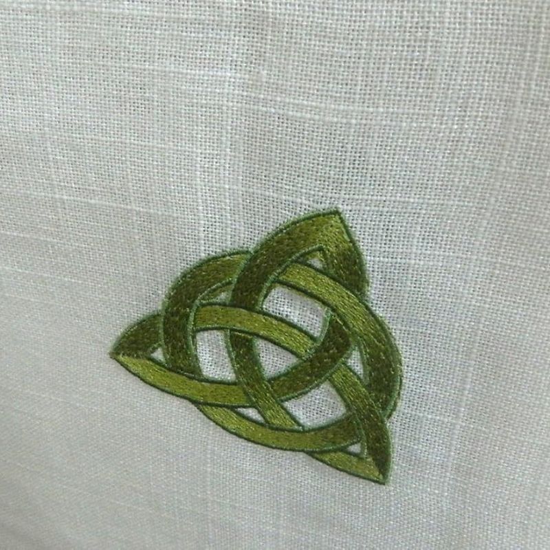 Bring timeless Irish elegance to your table with the Linen Look Golden Trinity Knot Embroidery Tablecloth, a beautiful piece that blends cultural meaning with everyday practicality. This refined white tablecloth features a delicate golden Celtic Trinity Knot, also known as the triquetra – a powerful symbol in Irish Christianity representing the Holy Trinity and the eternal connection between faith, life, and spirit.