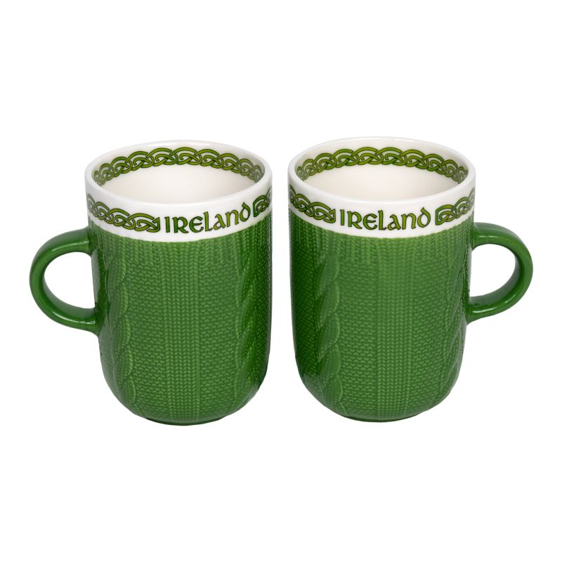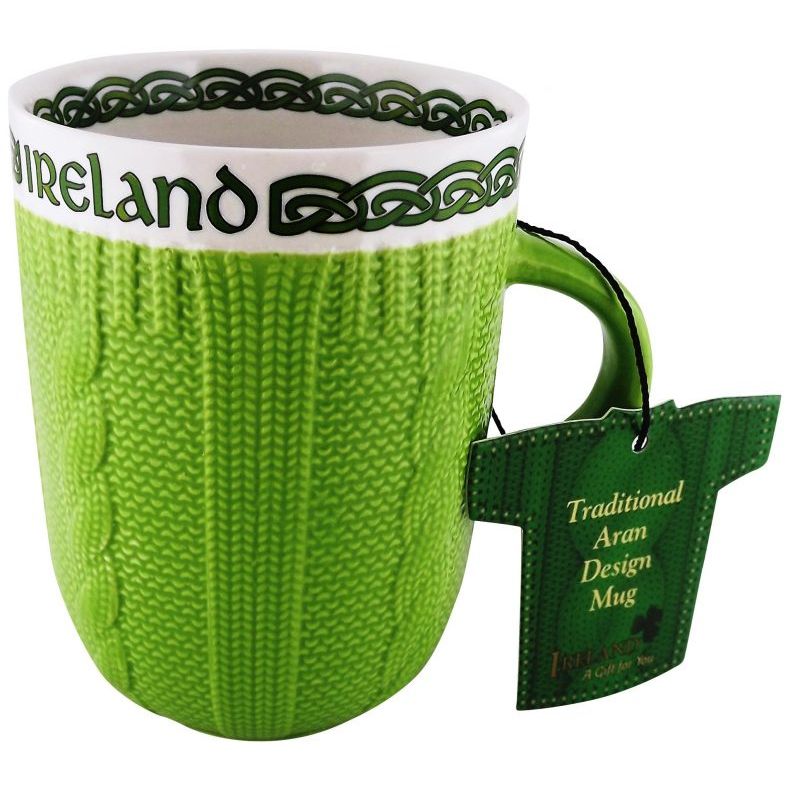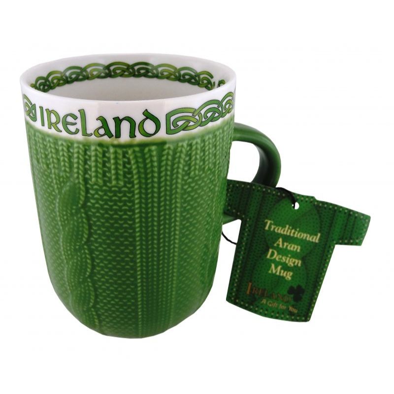 Just above the cablework, “Ireland” is proudly displayed, framed with Celtic knotwork that adds another layer of meaning and artistry. It’s a mug that feels both decorative and deeply rooted in tradition. And if you love this style, you might also enjoy our Handmade Irish Pottery Aran Mug.It is made from ceramic, feeling solid and durable. They keep drinks warm at just the right pace.