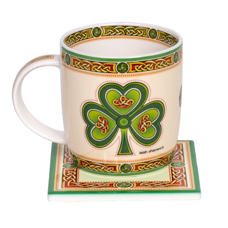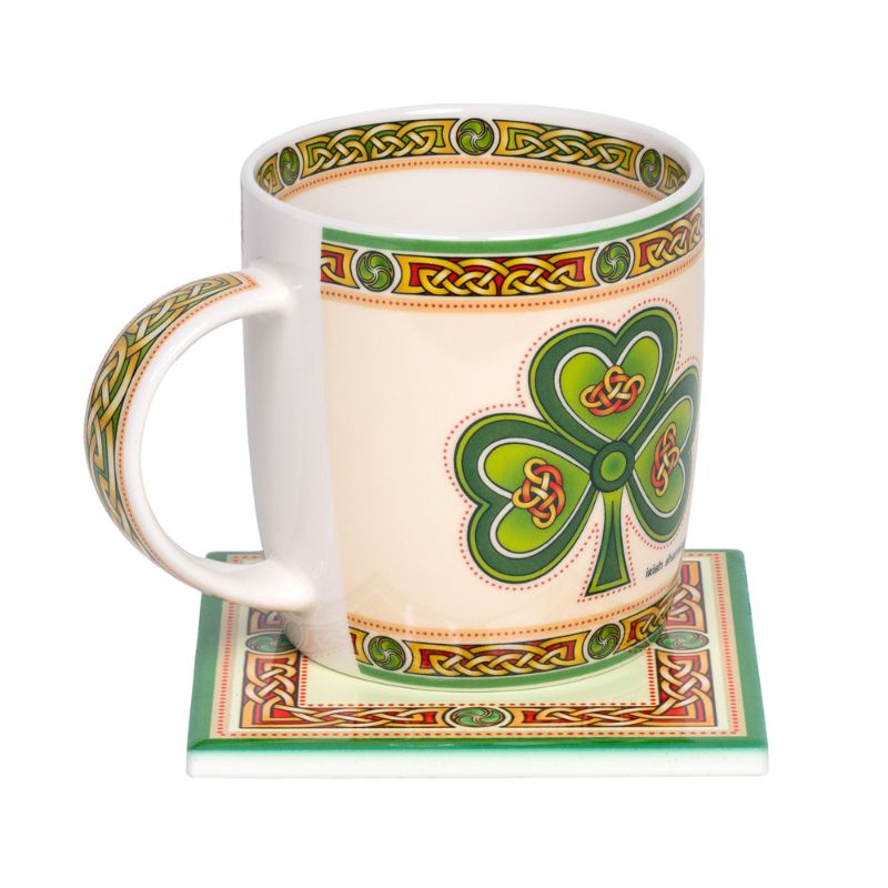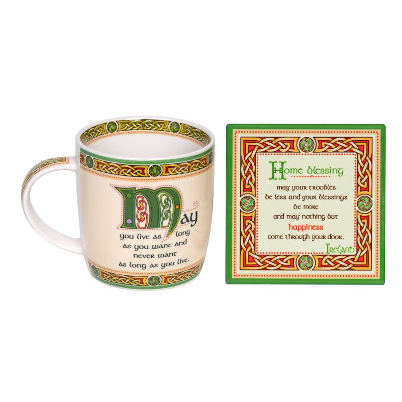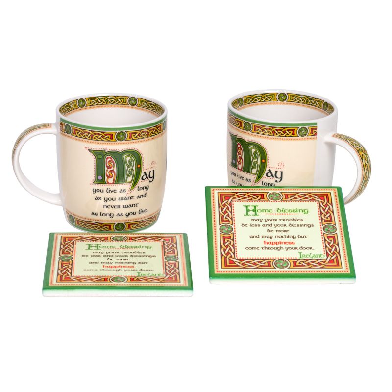 The mugs are made from high quality new bone china ensuring they are dishwasher and microwvae safe. With a comfortable 12.5 fl oz capacity, they are perfect for a proper cup of tea or coffee. The ceramic coasters match beautifully, finished with cork backing so they sit securely and protect your table. They also pair naturally with our Traditional Irish Blessing Tea Collection, adding another layer to a quiet tea moment and turning it into something a little more special.