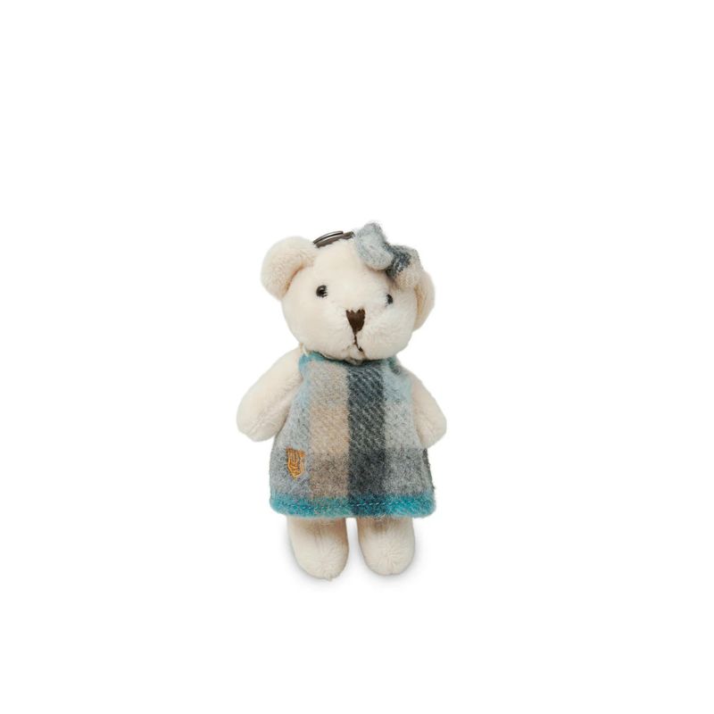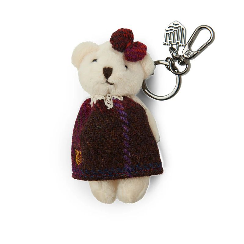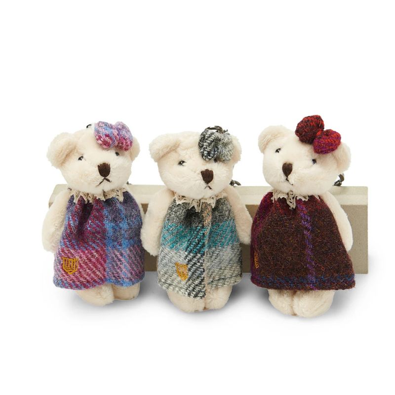 This wee Teddy bear is made from premium plush and is dressed in traditional Scottish attire! Whether you choose it clothed in an adorable dress & head ribbon or a classic romper, this Teddy bear key chain uses genuine Harris Tweed, a premium yarn coming directly from the Outer Hebrides of Scotland, using 100% pure new wool.