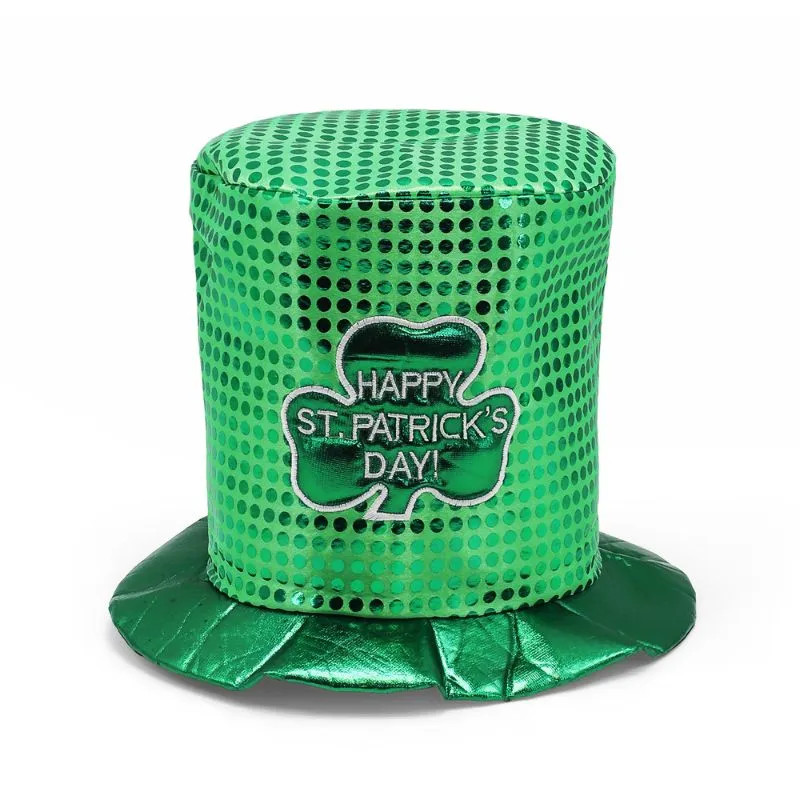 Get ready to rock your St. Patrick’s Day celebrations with our whimsical St. Patrick's Day Sequin Top Hat– an eye-catching cap that we guarantee won't go unnoticed! Sparkling in bright green sequins, it instantly adds that festive flair to any outfit and makes you the life of the party. The charming Irish shamrock applique, complete with cheerful ‘Happy St. Patrick’s Day!’ embroidered text, brings just the right amount of holiday spirit to your look– perfect for parades, pub crawls, or even virtual celebrations!