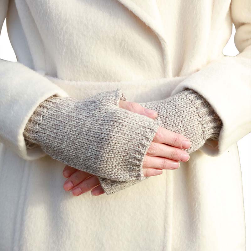 The fingerless style of our gloves makes them a natural standout, and they’re versatile enough to wear with casual and formal looks. Our wonderful Merino Wool Irish Fingerless Knit Gloves are available in a very comfortable one-size-fits-all design and are available in Classic Aran (off white) or Toasted Oat colors that are easy colors to match, and very pleasing to the eye.