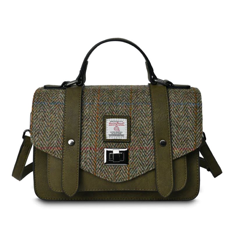 Complementing the Harris Tweed, this satchel features a vegan microfiber leather body, offering a high-quality, eco-conscious finish that’s both stylish and sturdy. The bag’s tartan and herringbone patterns bring a touch of Scottish flair to your ensemble, with timeless patterns that connect style with story.