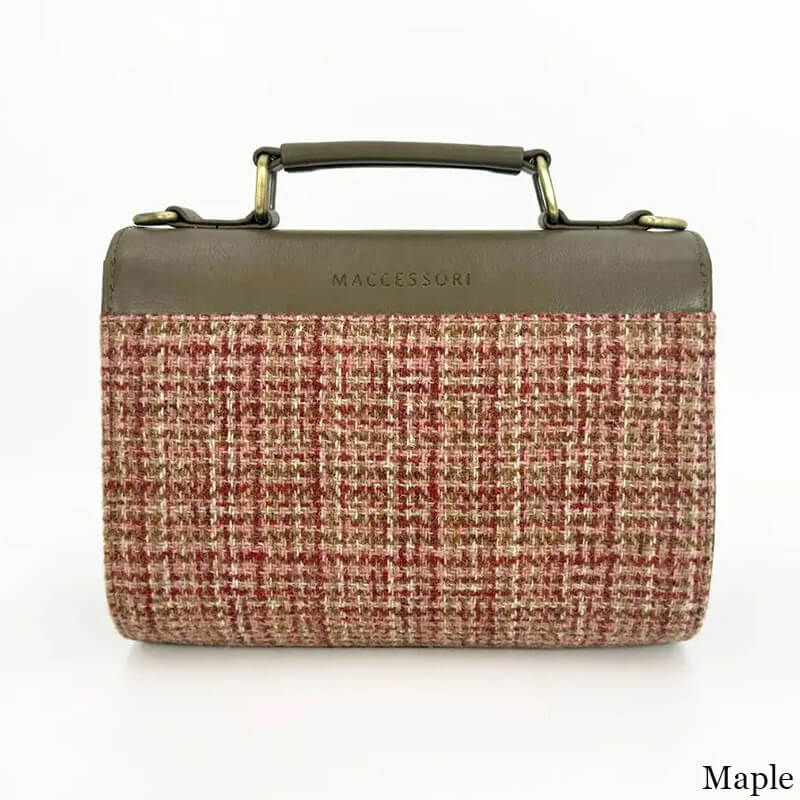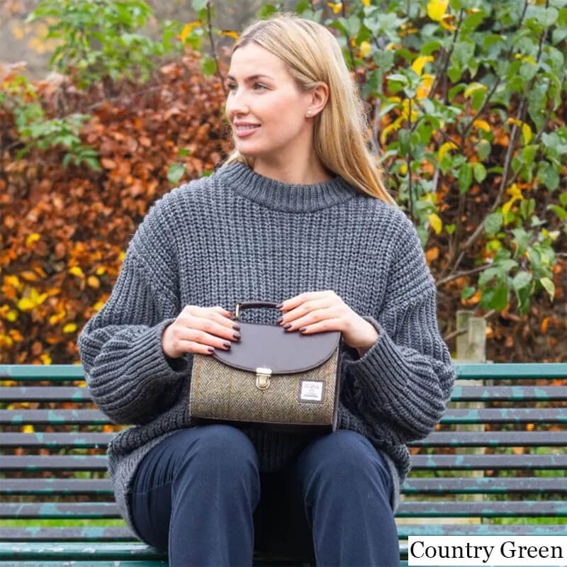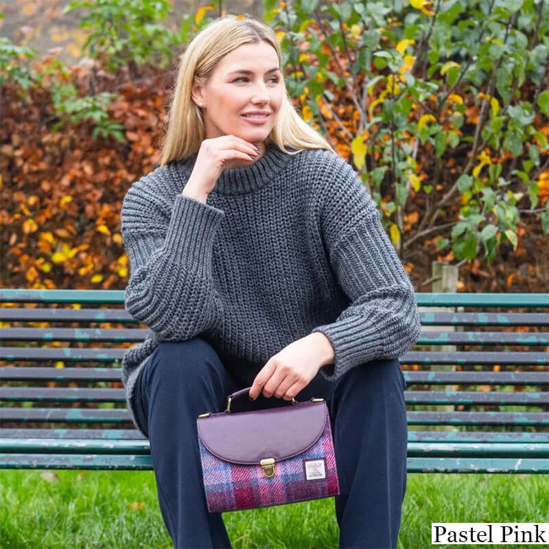 Harris Tweed is also praised for its high performance, since it’s a hardwearing material that withstands wear and tear and is naturally waterproof (meaning you can wear your Harris Tweed bag even when it’s raining or snowing). The bag is masterfully finished with ethically made, color-matched vegan leather for added durability. The handle and adjustable & detachable shoulder strap are also made of superior vegan leather.There are even more cultural aspects that await discovery! We offer a wide range of refined Scottish designs, from traditional herringbone, associated with the idea of good fortune, to bold clan-inspired tartans. Bonus: all colors take inspiration from the local flora; so, whether you opt for forest green, misty blue, or thistle pink and purple, this bag is like a small-scale landscape in your wardrobe! For a cool, coordinated look, browse Scottish-style wallets and purses from our Women's Tweed Bags category.