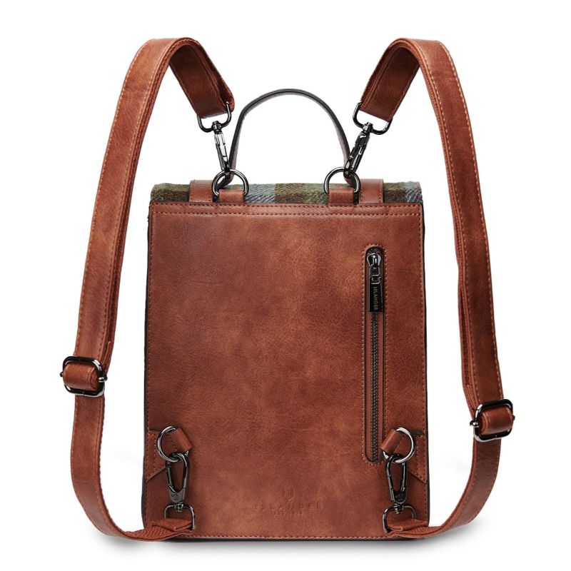 Crafted with authentic Harris tweed, this backpack carries the legacy of Scotland’s Outer Hebrides. Handwoven from pure new wool by skilled Scottish artisans, it’s a premium yarn known for its durability, moisture-resistance, and timeless charm. Plus, it comes with an official Harris Tweed Authority label, guaranteeing its authenticity. The vegan leather accents add structure and style, making this a piece that lasts.Inside, you'll love the floral-patterned lining, offering a soft and refined touch. It’s a detail that speaks to the craftsmanship of Islander, a leading Scottish manufacturer. The bag features two secure compartments with a main clasp closure, an extra interior clasp for security, and a vertical zippered pocket on the back – perfect for essentials. There's even a dedicated compartment for smaller devices – such as a tablet or small laptop!