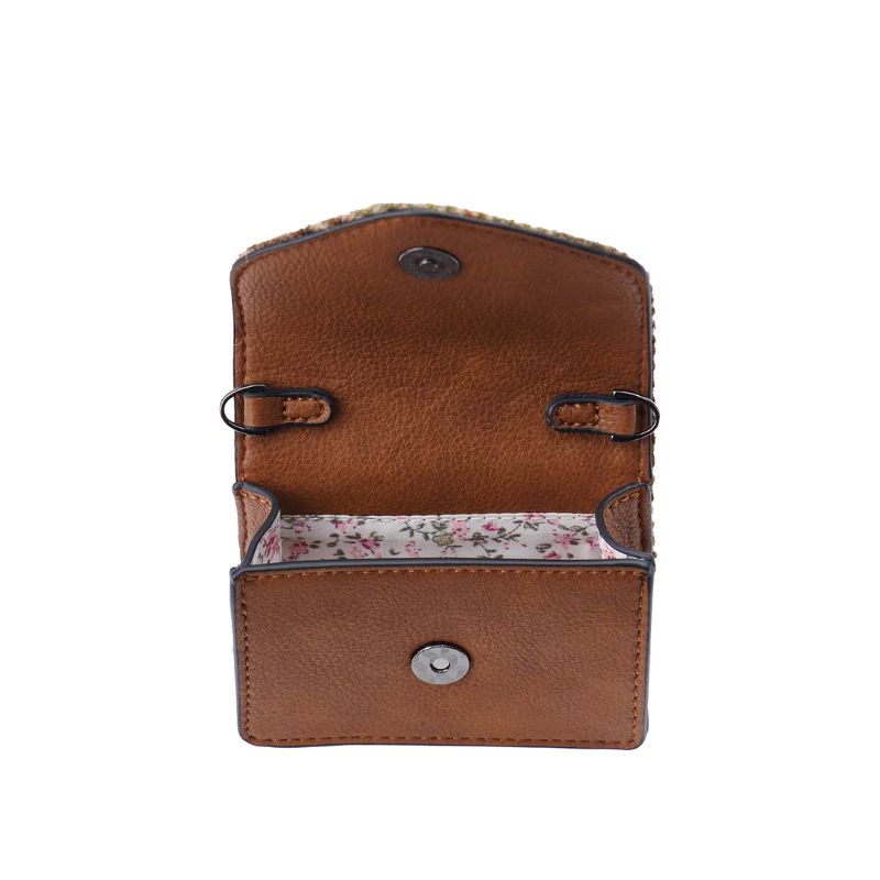 The mini satchel has a main inner compartment enclosed by a magnetic clasp and an outer open back card compartment for your most used card. The inside is enhanced by a high-quality polyester lining, adding extra durability and protection to your belongings. Our Harris tweed bags make fantastic gifts from Scotland, unique souvenirs, or a well-deserved treat to yourself, destined to last a lifetime and be loved equally!