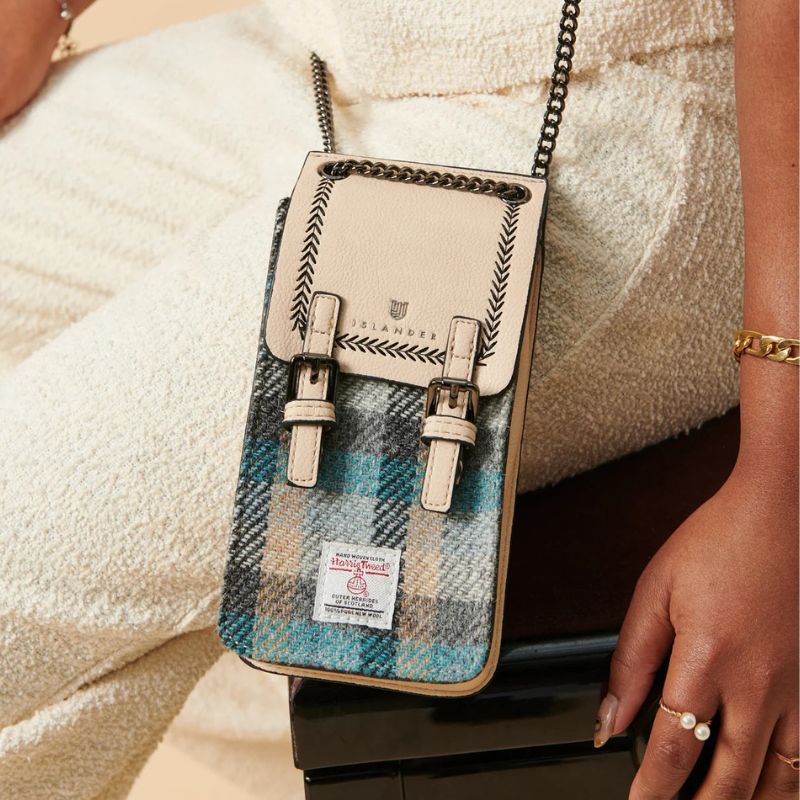 Our Harris Tweed phone pouch from Islander has a reliable double magnetic clasp closure and an adjustable shoulder strap, allowing for a high degree of flexibility in how you want to use it.