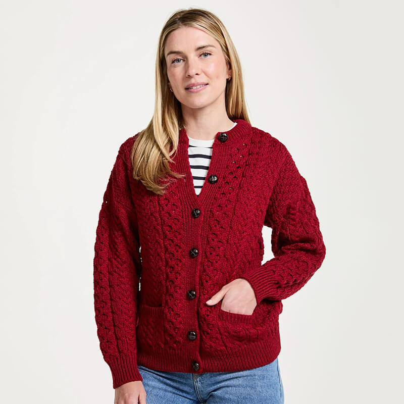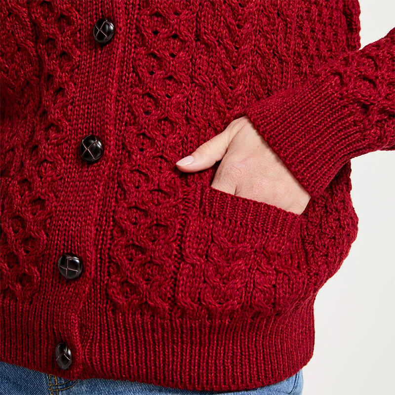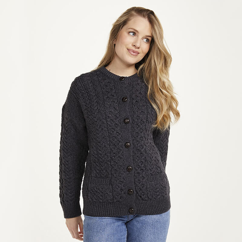 The Beautiful Women’s Irish Cardigan comes with elegance, uniqueness and a cute feminine look. This cardigan is one of the most popular and favorite women Irish sweaters, especially during winter and fall. The popularity can be attributed to its simplicity as it encompasses a typical style intertwined with a mixture of the traditional Aran patchwork. The cardigan is so comfortable, fit for any occasion, and will keep you warm throughout the cold season. It is one of the bestselling Irish cardigans, and its popularity is the world over. Aran stitching Aran patchwork and intricate patterns are identified as one of the oldest knit-work in garments history.