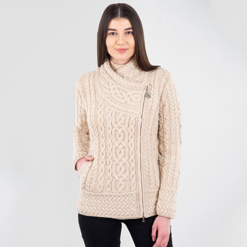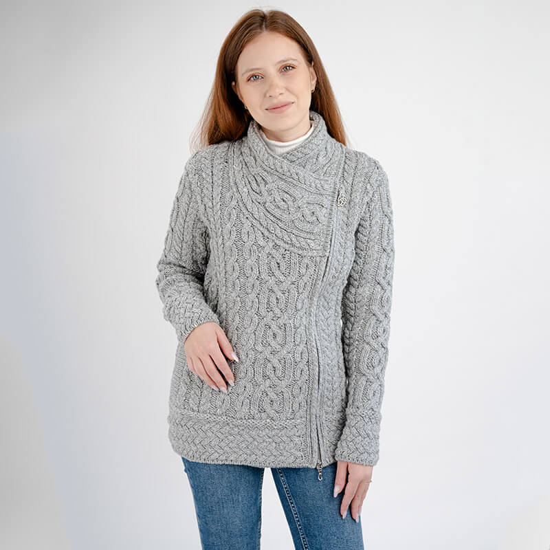 The design features various Aran stitches, which give this cardigan an authentic Irish charm. Aside from the gorgeous Irish design, the Celtic Knot zipper stands out and shows off the Celtic heritage. This beautiful cardigan was made with tradition in mind but the style is also adapted to contemporary needs and preferences.