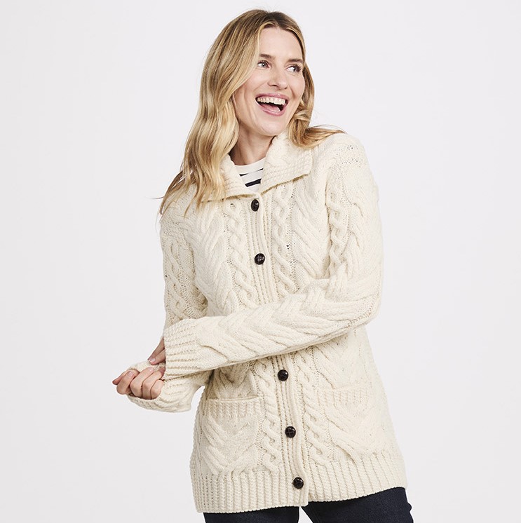 Button it up on a chilly evening, or leave it open over a blouse or tee when you just need an extra layer.What makes it even more meaningful is knowing where it comes from. Each cardigan is knit in Ireland by artisans who’ve inherited generations of skill.