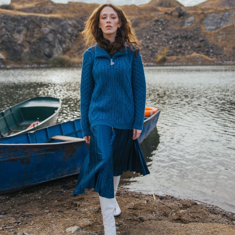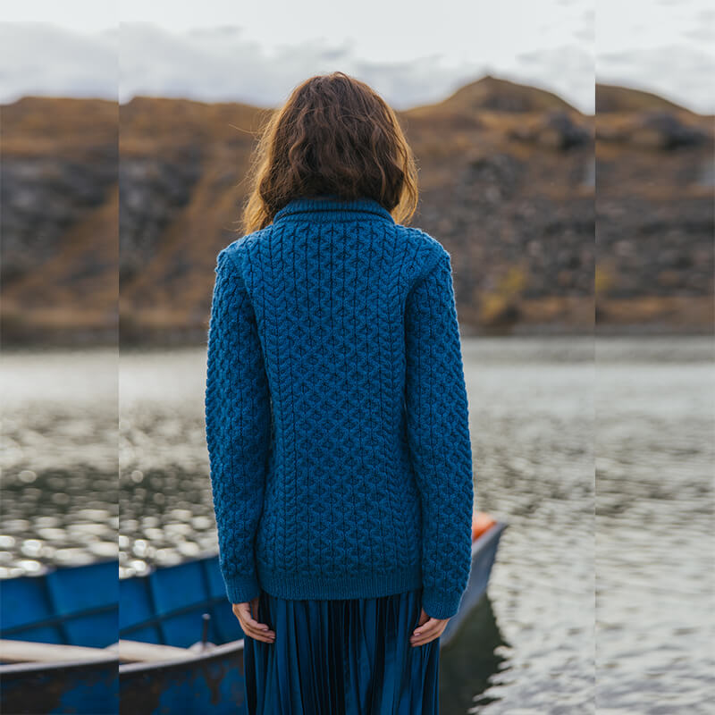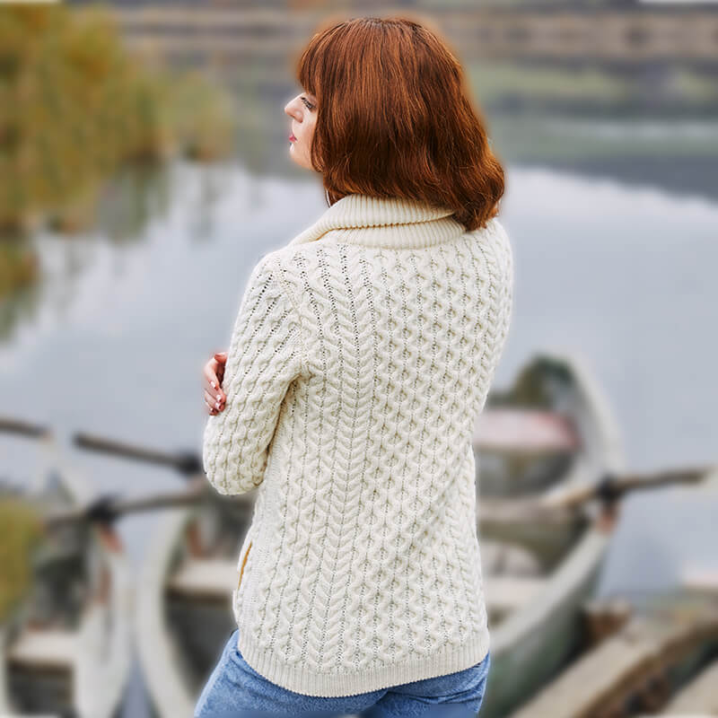 Our cardigan is an ode to the Irish knitting traditions and exudes excellent craftsmanship, making a timeless, elegant, and culturally authentic addition to any sophisticated lady’s style!