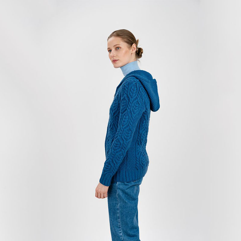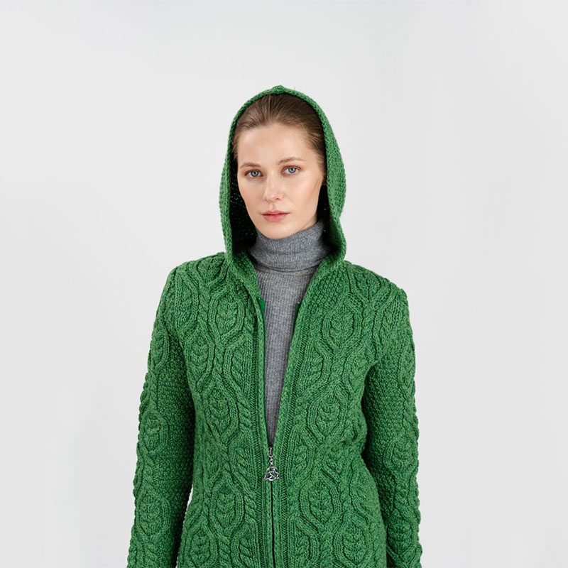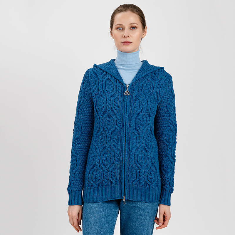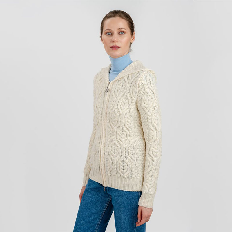 For generations, the Aran stitch has served the Irish people living on the island’s blustery coasts. Wives determined to keep their husbands safe and warm when out at sea have slowly perfected the Aran stitch over the course of many decades, many of whom developed their own unique versions of the pattern and tying it to their unique family or clan name. The method of mimicking the stich became a closely guarded secret, passed down only to those trusted enough to carry on the family tradition. At its core, the Aran stitch is tightly woven and designed around equal parts comfort and durability. The icy Atlantic winds are no match to a competently-woven Aran stitch, and it was not long before the popularity of the design became prolific throughout Ireland. Today we are fortunate enough to enjoy the same level of care and attention put into each Aran-inspired garment, and our Plaited Cable Zipper Cardigan is no exception. While the methods of its manufacture may have become somewhat modernized, these pieces are still handmade and no two items are identical. The same traditions and principles of the Aran stitch that went into those sweaters of old live within this same cardigan, and you will feel it the moment you take it out of the box and throw it over your shoulders.