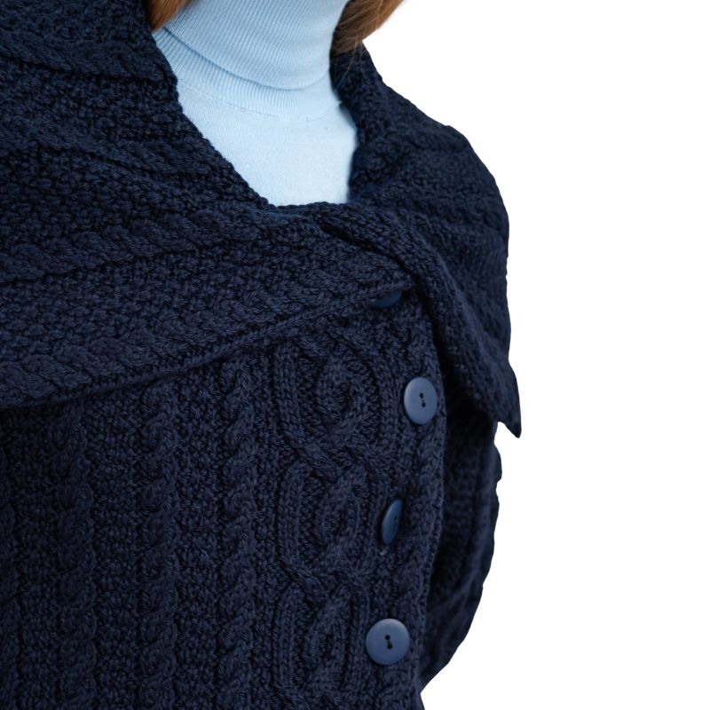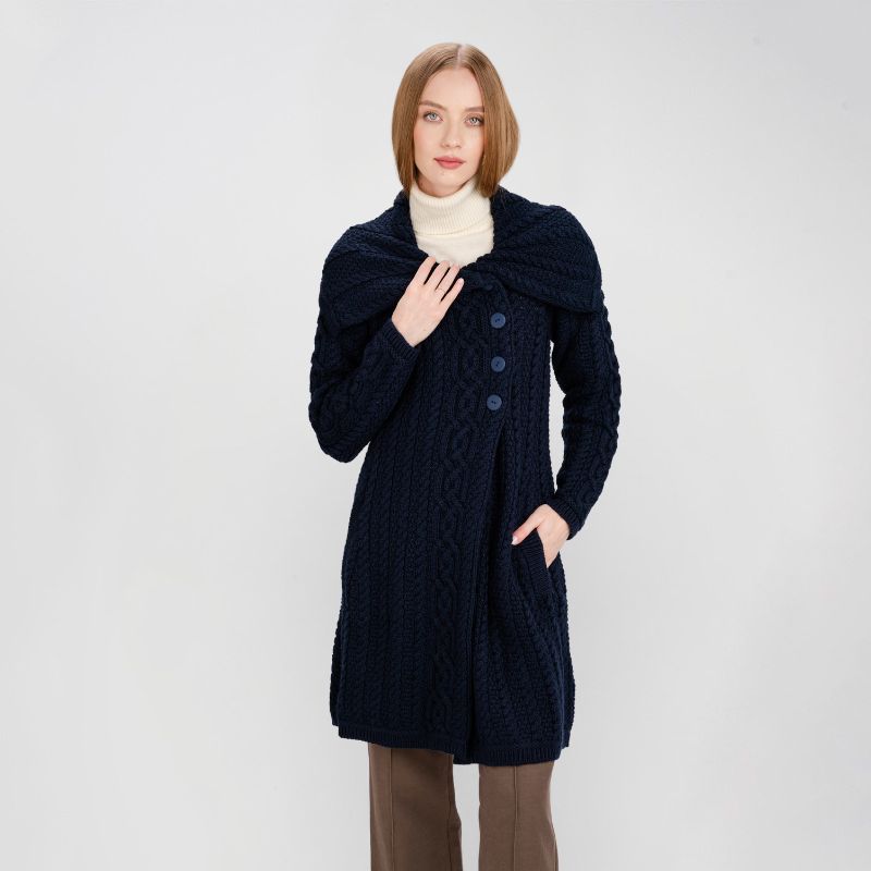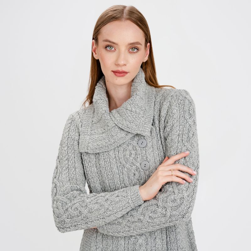 Every little piece of the Aran cardigan has been carefully thought of, from the intricate, sleek patterns, to the comfortable material, and the practical, skilled, and outstanding design and style. Whether on water or land, the folklore holds; you'll feel happy and confident in our gorgeous sweater coat! Incredible design and style Our beautiful coat has gone through the hands of professional and skilled designers, knitting together a masterpiece that leaves many people impressed and yearning to try it on. The loose-fitting sleeves are flattering and roomy, giving you comfort and warmth. The asymmetric three-button collar looks for sophistication, stylish and relaxed, making you stand out in a crowd! The inclusion of the deep side pockets is perfect for keeping your hands warm during the chilly winter months.