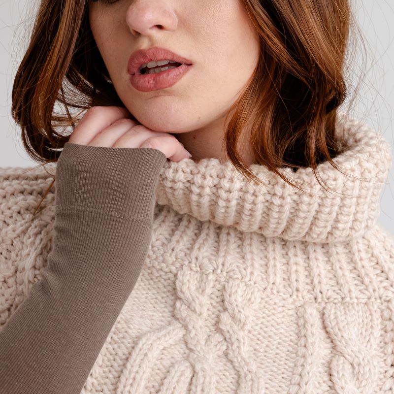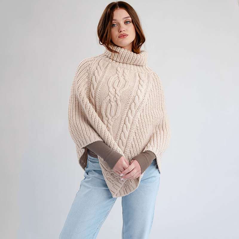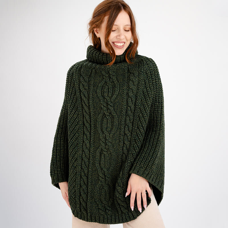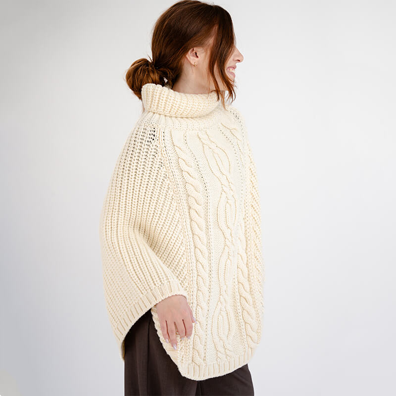 This cable poncho is designed and made in Ireland by SAOL, a leading Irish knitwear company that takes traditional Irish sweater designs and transforms them into contemporary pieces. Boasting excellent craftsmanship and an authentic, culturally-inspired design, this poncho also makes a great gift choice that is sure to leave a long lasting impression on any fashionista.