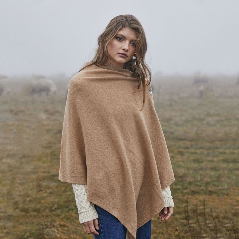 Our Lambswool Ladies Shawl is the perfect combination of comfort with style and a must-have in your wardrobe this cold season! Designed for versatility, this shawl features a loose, flowing silhouette with a button-up opening and a flattering V-neck, making it the perfect layering piece. Wear it as a classic draped shawl, fasten the buttons at the front for a chic poncho-like look, or shift the button line to the side for a stylish asymmetrical effect. Feeling creative? Transform it into a cozy scarf – the styling options are endless! This garment has a neat, classic design for those who prefer a classic style that pairs well with virtually anything. If you love a more textured design, be sure to check out our Merino Irish Poncho with Button Detail – a similar model featuring classic Aran stitches for a timeless and rugged look!