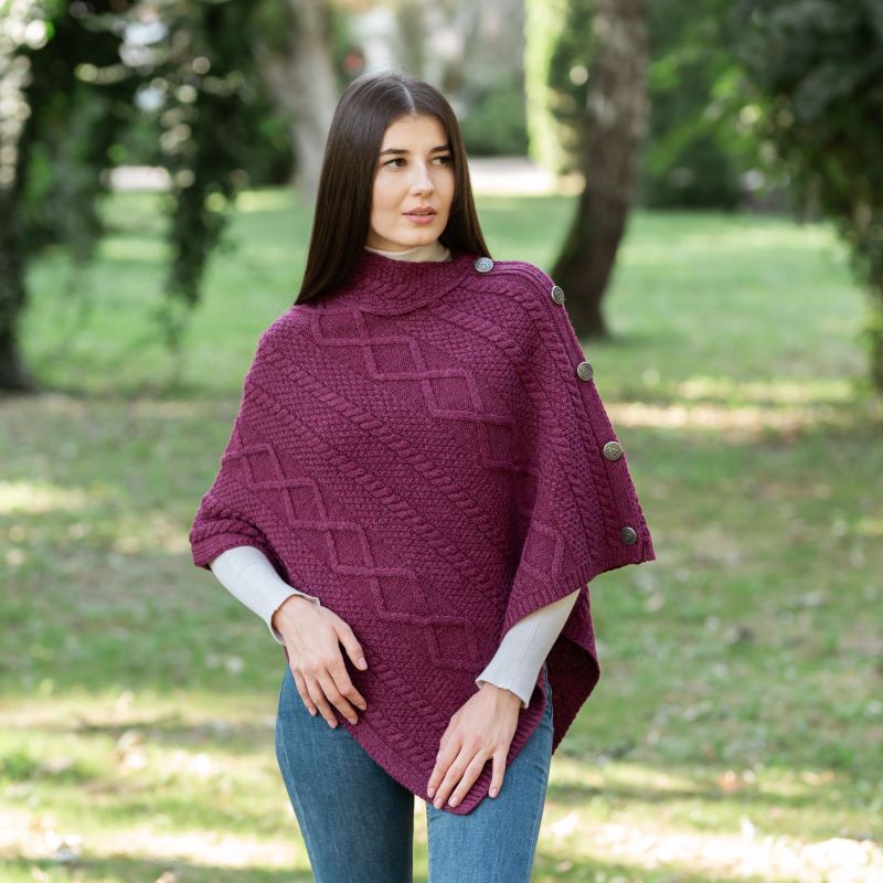 As it combines functionality with a very versatile style, our Merino Irish Poncho with Button Detail is sure to become your favorite pick for cold, windy days. With this piece, you can stay warm while also looking stylish and fashionable this winter! It is made from 100% fine Merino Wool, which is soft to the touch, having a pleasant texture on the skin. This type of wool lacks regular wool’s itchiness. It has heat preserving and moisture resisting properties, which makes it ideal for the colder months. Our poncho is the ideal piece for layering - the more layers you add, the warmer you’ll feel! Worn on its own, it can be a great piece for crisp spring or summer evenings as well, allowing breathability.