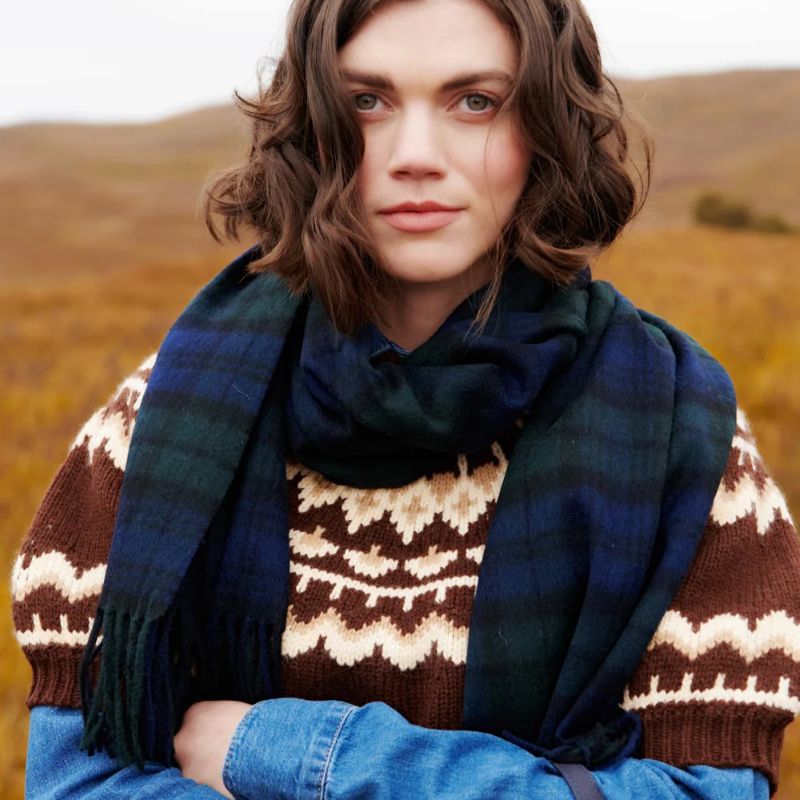 Looking for a scarf that’s more than just an accessory? Our Lambswool Fringed Islander Tartan Scarf is a true Scottish piece you can wear every day! Made from authentic 100% lambswool, this scarf is designed in Scotland by skilled artisans who’ve been perfecting their craft for generations. Lambswool is a premium natural yarn, praised for its warmth, moisture-wicking abilities, and durability– it’s tough enough to stand the test of time.